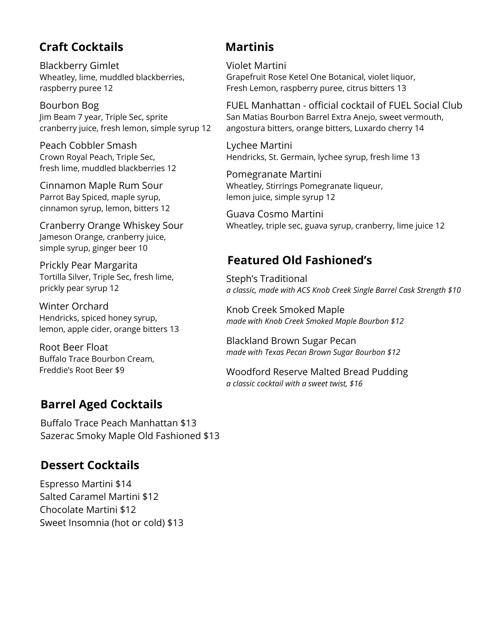 Bar Menu